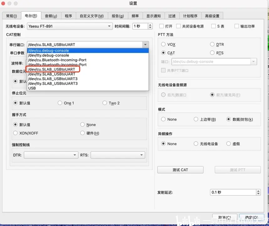 这个时候需要连接你的电台到mac,不连接的话,在jtdx里是看不到新安装好的虚拟串口的哦。
