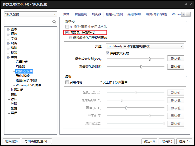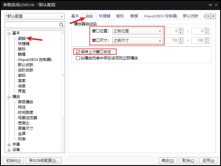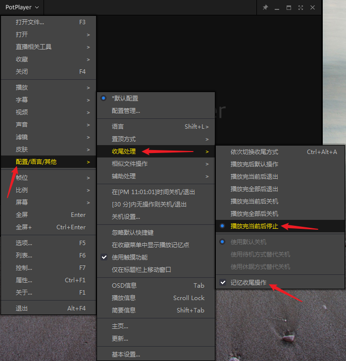 注意:在设置“播放完当前后停止”、“记忆收尾操作”之后,进入“选项->应用->确定”,以免每次启动后重新设置。