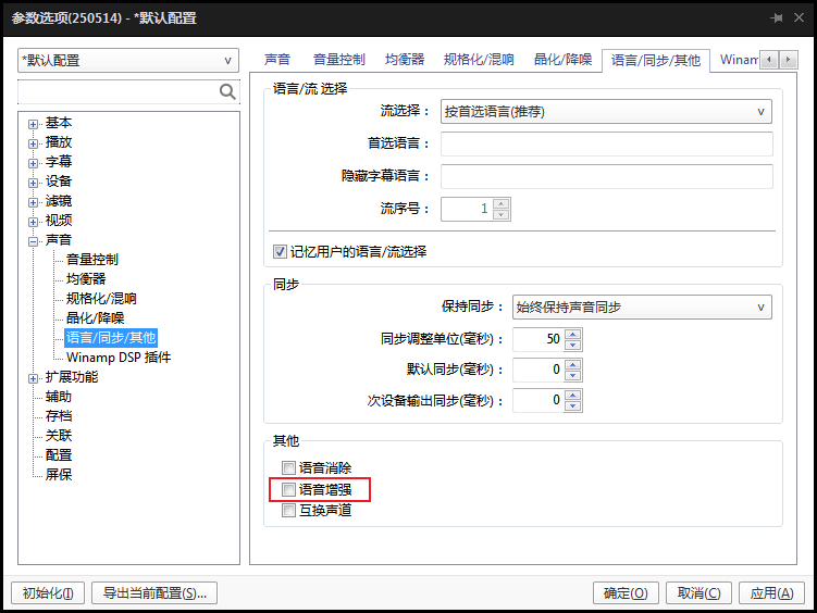 声音清晰设置在播放课程时,遇到声音很闷又单让人声清晰时,可按以下设置为“